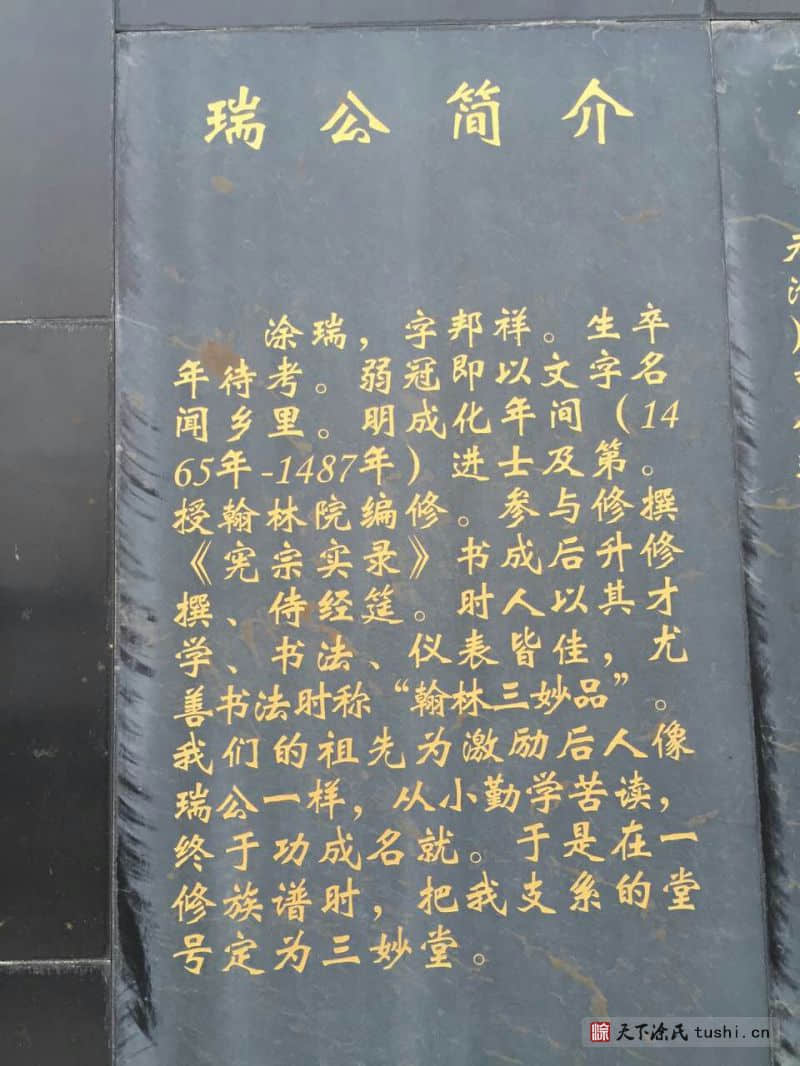 湖南省临灃县新安镇涂氏先祖纪念碑