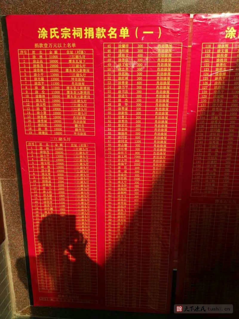 以上为捐赠1万元以上涂氏宗亲