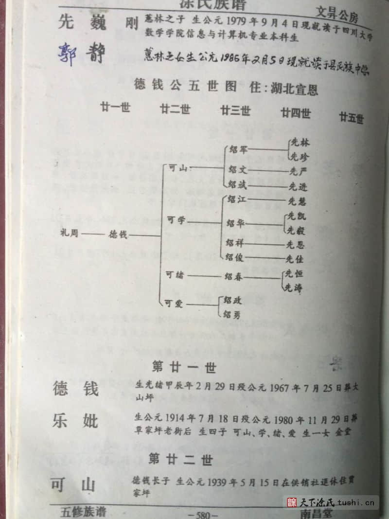 这是以前翻谱书拍的,忘记拍完了,只拍我们这一家的直系,有没有知道前面十四世的