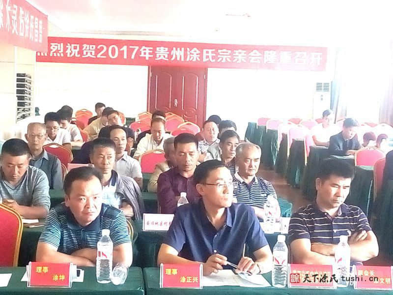 参会代表有贵州省内各地宗亲及重庆、福建的宗亲共六十多人参加会议,会上,常务副会长涂融回顾和总结了贵州涂氏宗亲理事会2016至2017年工作报告,理事会会计涂坤作了2016至2017年财务收支情况报告,涂云勇向大会汇报2016至2017年贵州涂氏族谱工作进度情况。大会对为贵州涂氏宗亲有贡献的人员进行表彰。