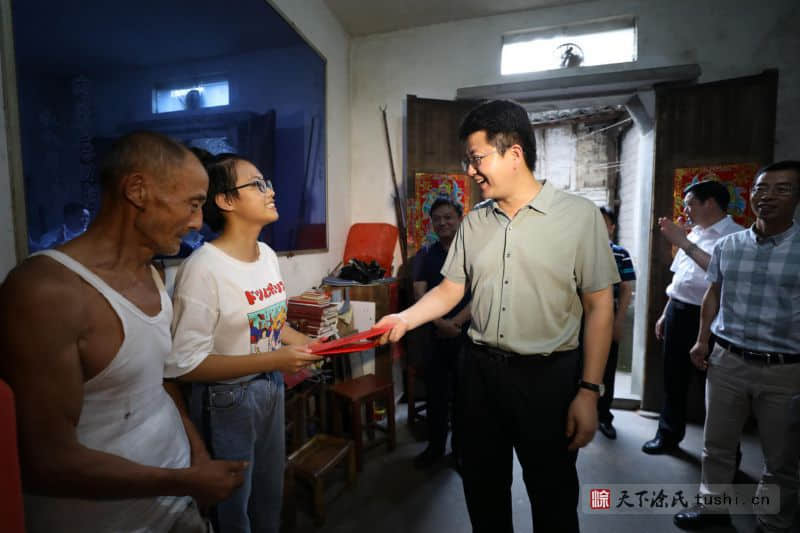 江西省丰城学前涂家女子涂婉婷今年录取北京大学,丰城巿长江伟斌到涂家巷祝贺。