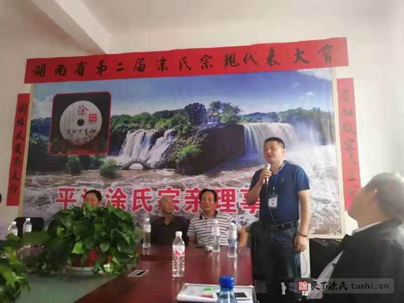 湖南涂氏宗亲会第二次代表大会于2018年10月2日在平江加义镇涂氏宗祠隆重举行。大会由常务副会长涂臻主持,湖南涂氏宗亲会副会长、东道主涂腾芳宗亲作了大会筹备工作报告;原会长涂俊坤宗亲作了工作报告,总结了自2015年湖南涂氏宗亲会成立以来,湖南宗亲所做出巨大成绩,明确了今后一段时间的工作任务;与会代表审议通过了《湖南涂氏宗亲会章程》和《湖南涂氏宗亲帮扶会章程》;大会进行了换届选举,选举原会长涂俊坤宗亲为荣誉会长,涂昌荣宗亲为会长,涂臻宗亲为常务副会长,涂腾芳等12名宗亲为副会长,还选举了秘书长、副秘书长、理事近50名,完善了宗亲会的组织机构。
