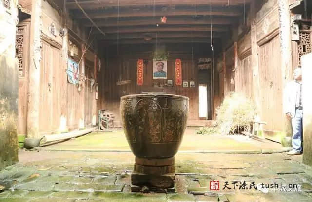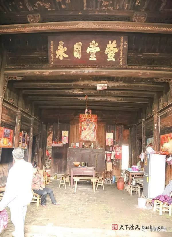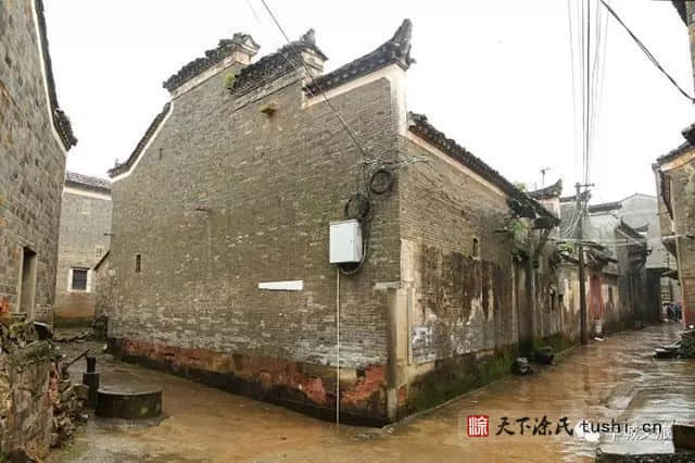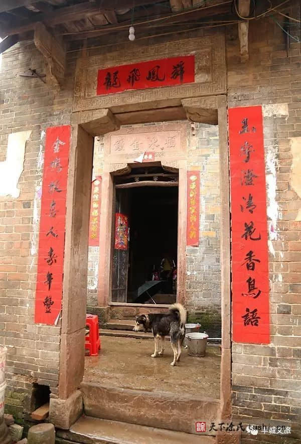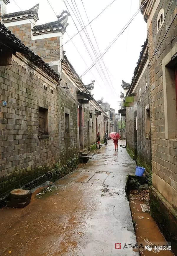 赤坑村至今仍保留有数十幢明清古宅。这些古宅相对集中,大约是早期的村庄旧址。古宅排列有序,形成较为明显的巷道。巷道仍多为青石板铺设,道旁约尺许宽的排水沟依墙而设,水流通畅,显然是古时留下。绵绵春雨中,小巷幽幽,老屋巍巍,炊烟袅袅,时见村民端着饭碗,坐在滴水檐下,一边吃饭,一边拉着家常。这样的情形,令人流连忘返,思古之心顿起。进入古宅参观时,见门匾清晰,雕刻精美,古色古韵,有时空穿越之感。有的老宅虽屡遭窃盗,大体却还完好。村中另存有古戏台一座,古井一眼,古祠一幢。